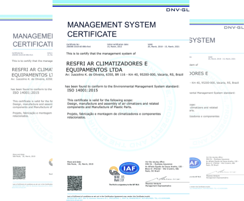 A Resfri Ar possui um Sistema de Gestão Integrada de Normas que se baseia na produção com qualidade, no cuidado com o meio ambiente e no zelo pela segurança e saúde de seus funcionários. Em função disso e buscando a manutenção destes princípios, a empresa conquistou certificações que garantem um excelente ambiente de trabalho, um funcionamento ecologicamente correto e sustentável e o compromisso com a qualidade dos produtos oferecidos.